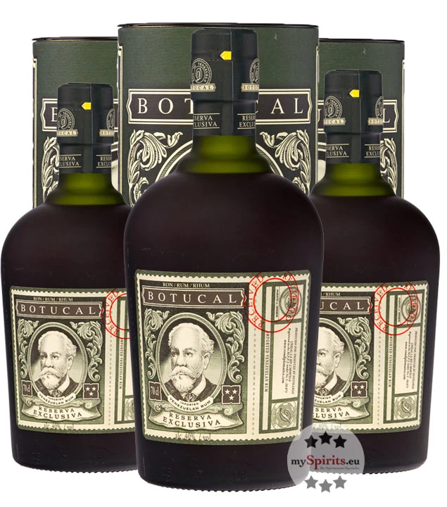 Das 3er-Paket besteht aus drei 0,7 Liter Flaschen Botucal Reserva Exclusiva Rum – jede der drei Flaschen ist jeweils in der originalen Botucal-Geschenkdose verpackt. Botucal Reserva Exclusiva ist ein Rum, der 12 Jahre im Eichenfass gereift wurde. Dieser Reifungsprozess sorgt dafür, dass das Produkt einen kupfrigen Farbton und wunderbare Geschmacksnoten von Gewürzen wie Vanille und Karamell erhält.