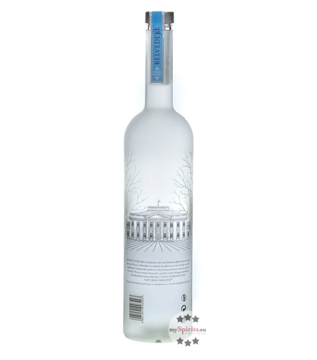 Verwendet werden lediglich polnischer Roggen und reines Quellwasser. Dabei beruft sich die 1910 gegründete Brennerei für die Destillation des Inhalts dieser 1,75 Liter Belvedere Flasche auf eine mehr 600 Jahre andauernde Brenntradition in Polen.