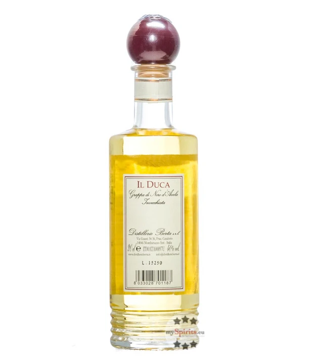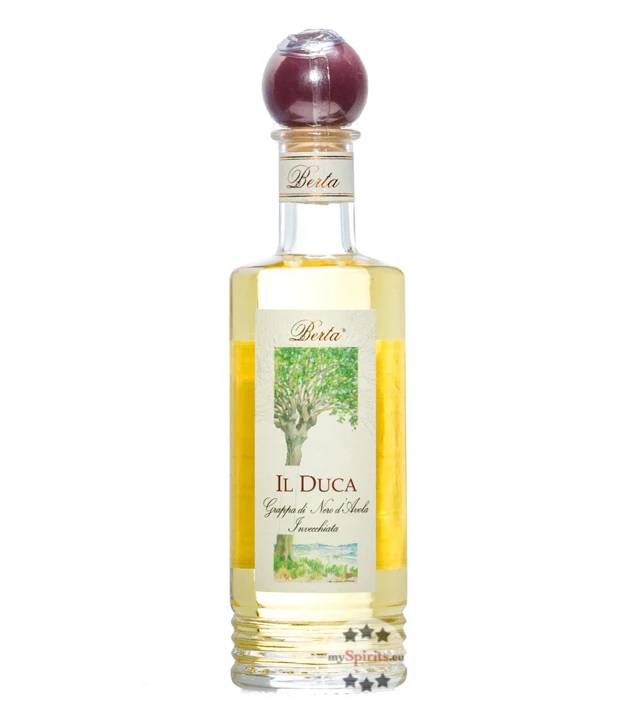 Nur wenige Destillerien stellen Grappa aus der dunklen Rotwein-Rebsorte Nero d’Avola her. Dabei ist dies eine ganz besonders schmackhafte Spezialität. Grappa Berta, die seit 1947 erstklassige Tresterbrände aus den Weintrauben der malerisch gelegenen Weinberge von Casalotto di Mombaruzzo im Piemont herausholen, stellt mit Il Duca, der Herzogin, auch einen solchen Grappa Nero d’Avola her. Die Anklänge dunkler Früchte sind einzigartig und charakteristisch für diese Sorte Rotweintrauben-Grappa.