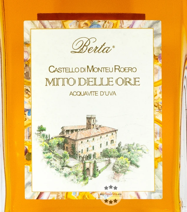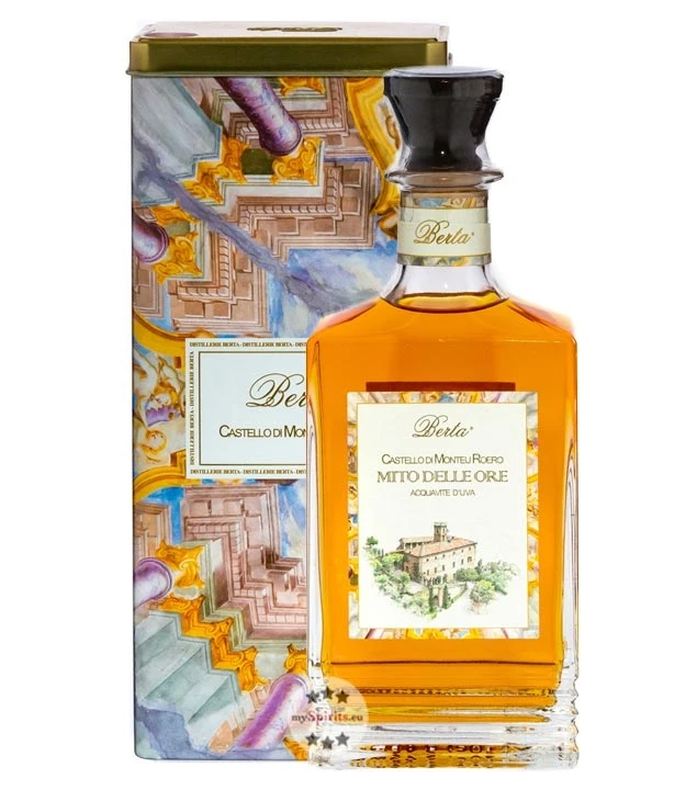 Das Schicksal vertraute der Familie Berta das Schloss von Monteu Roero an. Die uralten Gemäuer boten einst Kaiser Friedrich Barbarossa Zuflucht und sind seit der Renaissance nahezu vollständig erhalten geblieben. Ein mystischer Ort, wie geschaffen für einen Geist. Der Weingeist mit dem Namen Mito delle Ore ist eines von drei Destillaten, die Berta dem Castello di Monteu Roero gewidmet hat.