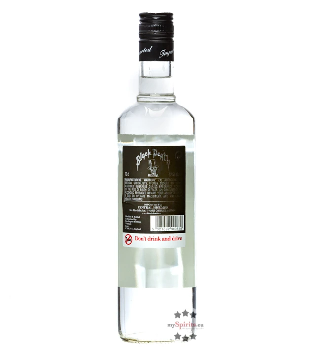 Black Death Vodka steht für ein unvergleichliches Geschmackserlebnis in Sachen Wodka. Geprägt wird er von einem weichen, milden Geschmack, der auch bedingt ist durch den recht sanften Alkoholgehalt von 37,5 Volumenprozent und die langjährige Erfahrung der Brennerei Burlington Bottling. Diese brennt das Destillat aus Getreide, was ihm eine sanfte, zart süße Nuance verleiht. Durch diese Eigenschaften lässt sich dieser kristallklare Wodka sehr gut pur trinken – am besten auf Eis serviert – , macht aber auch in jeder Art von Vodka-Cocktail oder Longdrink eine tolle Figur. Eine Bloody Mary, ein Touchdown oder auch ein klassischer Vodka & Tonic Water schmecken mit dem Wodka von Black Death besonders gut.