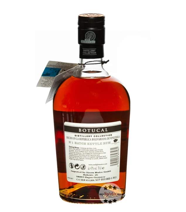 Wer Rum aus Venezuela schätzt, kommt an Botucal nicht vorbei. Die Destilerías Unidas S.A. ist einer der größten venezolanischen Produzenten für Rum und bekam 2013 beim London Rum Fest den „Rum Barrel Award“ für die beste Rum-Brennerei weltweit. Das ist nicht zuletzt der hohen Qualität der Rohstoffe des Premium-Rums geschuldet, die bei idealen Bedingungen im Planas Tal am Fuße der Anden wachsen. Wundervolle, saftig grüne Landschaften unweit des Terepaima Nationalparks prägen das Bild, das dem Rum auch seinen Namen gab. Das einheimische Wort „Botuka“ bedeutet „grüner Hügel“, eine Hommage an das malerische Bild, das sich direkt vor der Destillerie erstreckt. Mit Hilfe des hier angebauten Zuckerrohrs wird der Zuckerrohrhonig hergestellt, der auch die Basis des Botucal Distillery Collection No1 Rums darstellt. Der limitierte Rum aus Sugar Cane Honye reifte bis zu sechs Jahre in ehemaligen Bourbon- und Scotch-Fässern, sowie frischen amerikanischen Weißeichenfässern.