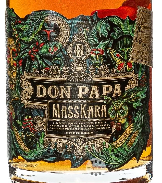 Bestes Zuckerrohr der Insel Negros ist der Rohstoff für den hervorragenden Don Papa Rum, der sein reiches Aromenspiel während der Reifung in Eichenfässern entwickelt. Der Rum dient als Basis für Don Papa Masskara, der nach der Destillation nochmals verfeinert wird. Zu seinem spannenden Geschmacksprofil tragen insbesondere Honig von den Philippinen, Siling Labuyo (eine philippinische Chili-Sorte) und Calamansi (eine Zitrusfrucht, die eine Kreuzung aus Mandarinen und Kumquat ist) bei.