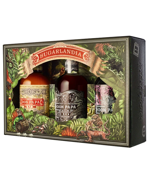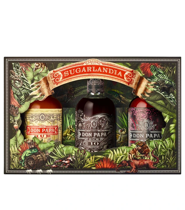 Don Papa Rum stammt von der philippinischen Insel West-Negros, wo auch das für den Rum verwendete Zuckerrohr gedeiht. Als „Sugarlandia“, ein sagenumwobenes Land des Zuckers, bezeichnen die Macher des Rums seine Herkunft – und auch das Set trägt diesen Namen. Die schöne Gestaltung der Tasting Sets macht sich dabei toll als Geschenk oder Mitbringsel.