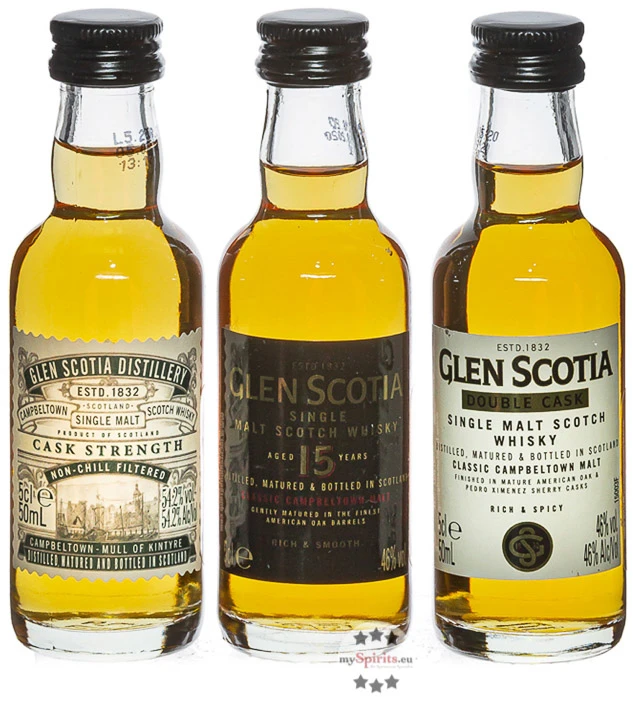 Entdecken Sie die geschmackliche Vielfalt der Glen Scotia Single Malts (3 x 0,05 Liter) in der Glen Scotia Tasting Collection bei mySpirits!