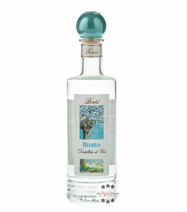 Berta Bimba weicht ab vom eingeschlagenen Weg. Denn Bimba ist ein Destillat aus Trauben. Nicht nur der Trester, sondern die ganze Traube mit ihrem saftigen Fruchtfleisch wird in den diskontinuierlich betriebenen Dampf-Brennblasen destilliert. Entsprechend weich wird der Brand, ein ganz besonderes Geschmackserlebnis: