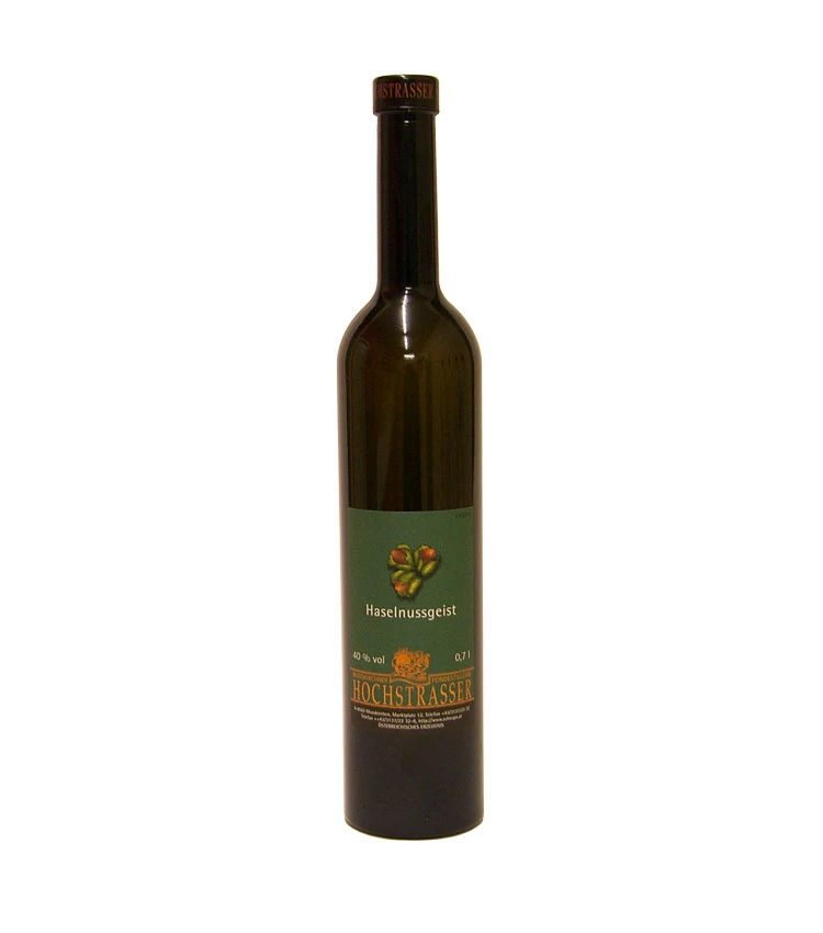 In reinem Kornbrand angesetzte geröstete Haselnüsse ergeben nach anschließender Destillation unvergleichlichen Hochstrasser Haselnussgeist. In der Nase werden die kraftvollen, würzigen Haselnussaromen gekonnt in Szene gesetzt. Für einen milden und stimmigen Ausgleich sorgen schokoladige Noten. Am Gaumen findet sich das intensive Nussaroma wieder, welches in einem lang anhaltenden und würzigen Abgang endet. Genossen werden sollte der Nussschnaps am besten pur und aus einem passenden Schnapsglas.