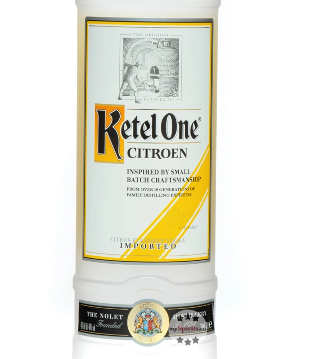 Ketel One Citroen ist aromatisierter Wodka, auch ‚Flavoured Vodka“ genannt. Er wird in den Niederlanden hergestellt und von der familiengeführten Destillerie in kleinen Mengen von Hand abgefüllt. Die Basis von Ketel One Citron sind reines Wasser und bester Weizen, welche später mit erlesenen Zugaben wie Zitronen aus Sizilien und zwei Sorten von Limetten ergänzt wird.