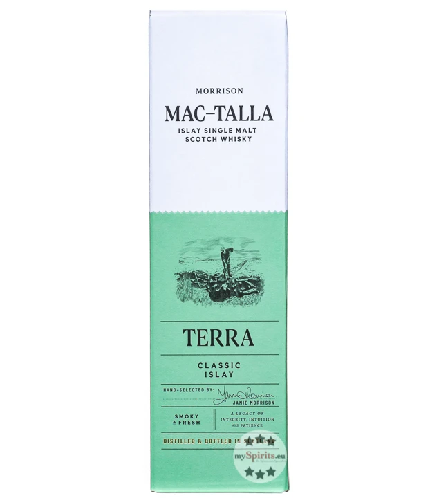 Die Morrisons sind eine der ältesten Whisky-Familien Schottland mit Sitz in Aberargie, Perth. Bereits seit vielen Jahren pflegt die Familie Whisky-Kontakte auf der Isle of Islay. Mit der Marke Mac-Talla produziert sie in Zusammenarbeit mit einer bekannten, aber nicht namentlich genannten Islay-Destillerie besten Islay-Whisky. Whisky-Kenner dürften die typischen Geschmacksnoten wiedererkennen. Der Markenname Mac-Talla soll die Verbindung der Familie mit der Insel widerspiegeln, denn „talla“ kommt aus dem Gälischen und bedeutet übersetzt „Echo“. Wie alle Mac-Talla Whiskys kommt auch Terra ungefärbt und nicht kühlgefiltert in die Flasche.