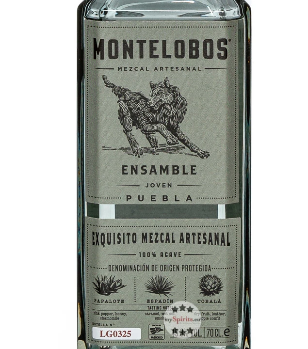 Mit Montelobos Ensamble ist dem Brennmeister Maestro Mezcalero Aarón Alva unter der Leitung von Iván Saldaña eine interessante Spirituose gelungen, die Kenner und Einsteiger – nicht nur wegen Ihres besonderen Flaschendesigns – gleichermaßen begeistern wird. Die Flasche des Mezcals ziert die Zeichnung eines Wolfes, denn die Brennerei produziert nicht nur nachhaltig und umweltschonend, sondern ist stolzer Partner des Wolf Conservation Center, das sich für den Artenschutz des Wolfes einsetzt.