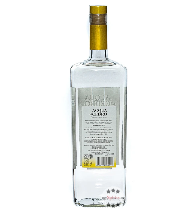 Nardini Acqua die Cedro ist ein besonders feiner Zitronenlikör, der mit Grappa und Cedro-Zitronen hergestellt wird. Cedro heißen in Italien die ursprünglichen Zitronen, die in Deutschland als Zitronat-Zitronen bekannt sind. Ihre Schale ist schrumpeliger und deutlich dicker als die der später gezüchteten (Limonen-)Zitronen und wird für Zitronat oder andere aromatische Lebensmittel weiterverwendet.