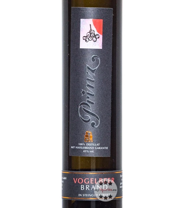 Mit einem langjährigem Erfahrungsschatz und viel Liebe zum Handwerk entsteht in der Fein-Brennerei Prinz aus Hörbranz am österreichischen Bodenseeufer Prinz Hafele Vogelbeer Brand. Aus den kleinen, rot-orangen Beeren brennt die Fein-Brennerei Prinz Hafele Vogelbeer Brand. Für einen Liter Brand werden mehr als 70.000 Vogelbeeren benötigt, welche erst nach dem ersten Frost geerntet werden. Im Geschmack treffen sich fruchtige Noten mit Nuancen von Marzipan.