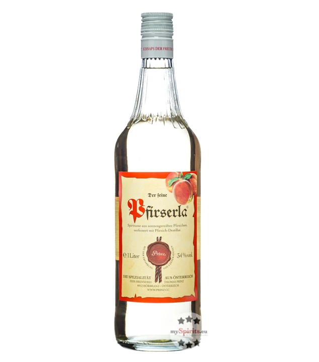 Wer sich auf die Suche nach gutem Pfirsich-Schnaps begibt, kommt an diesem nicht vorbei: Der feine Pfirserla von Prinz überzeugt mit intensivem natürlichen Aroma des saftigen Fruchtfleischs vollreifer Pfirsiche. Mit sanftem Alkoholgehalt von 34 % Vol. kommt der Geschmack klar. fruchtig und durchaus mild zur Geltung. Der zur Herstellung verwendete Pfirsich-Feinbrand wurde in Steingut ausgebaut und sorgt für eine geschmackliche Reinheit, bei der man auch die Qualität der Früchte schmeckt.