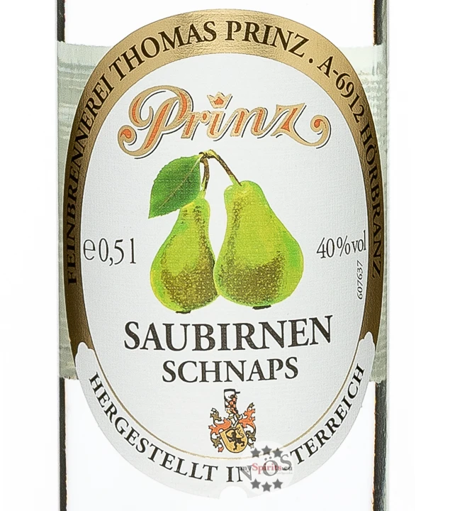 Prinz Saubirnen Schnaps wird mit Feinbrand aus Früchten der teils über 70 Jahre alten Hochstammbäume von den Streuobstwiesen der Brennerei hergestellt. Das Destillat ruht bis zu zwei Jahre in Steingut, bevor es zu Prinz Saubirnen Schnaps weiter verarbeitet wird.