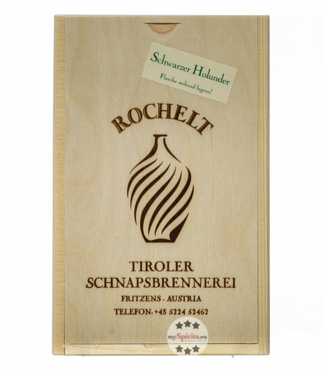 Wir freuen uns, Ihnen hier Rochelt Schwarzer Holunder anbieten zu können. Die 350ml-Flasche kommt mitsamt eindrucksvollem Zierstöpsel in der edlen Holzkiste. Erleben Sie mit mySpirits die Welt der außergewöhnlichen Edel-Obstbrände von Rochelt aus Fritzens in Tirol.