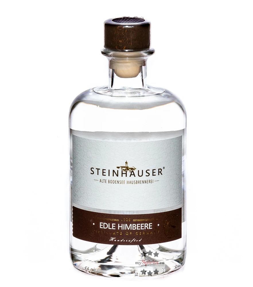 Schon seit 1828 brennt der Familienbetrieb Obstbrände, Geiste, Liköre und Schnäpse aus den Früchten der Bodensee-Region. Neben der langen Erfahrung nutzt Steinhauser eine der modernsten Brennanlagen Europas, um das Aroma erlesener Früchte schonend zu konservieren. Weil Himbeeren nur sehr wenig Zucker enthalten, werden die reifen, makellosen Früchte mazeriert, und wenn sich die wertvollen Bestandteile der Himbeere im Alkohol gelöst haben, wird das Mazerat doppelt gebrannt – der Himbeer-Geist von Steinhauser entsteht.